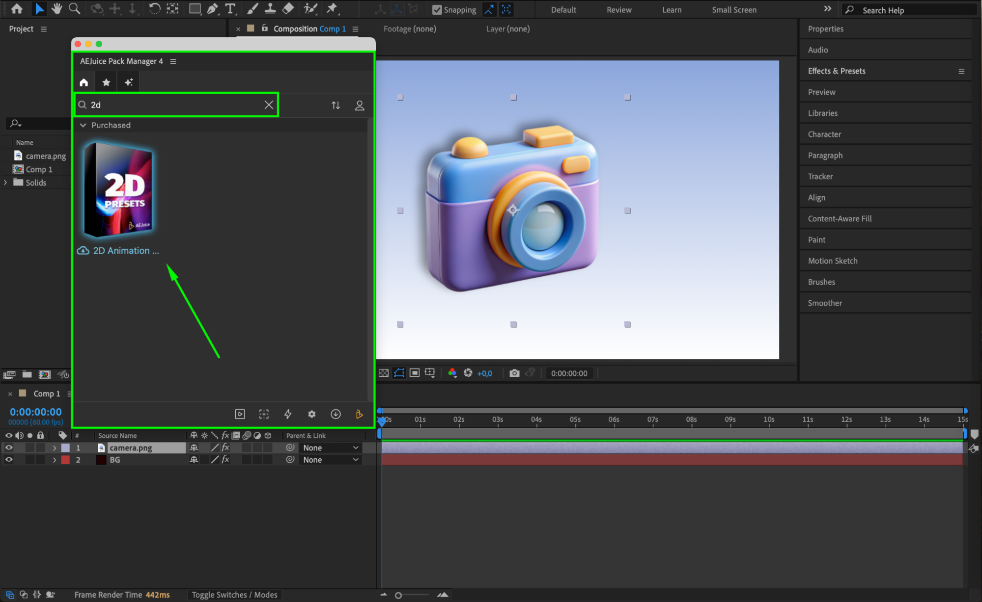 Inside the Pack Manager, find the 2D Animation Presets Pack. If it’s not downloaded yet, click on it and wait for the download to complete. Once ready, you’ll be able to preview and use the included animation templates.Step 4: Apply a Preset to Your Layer
