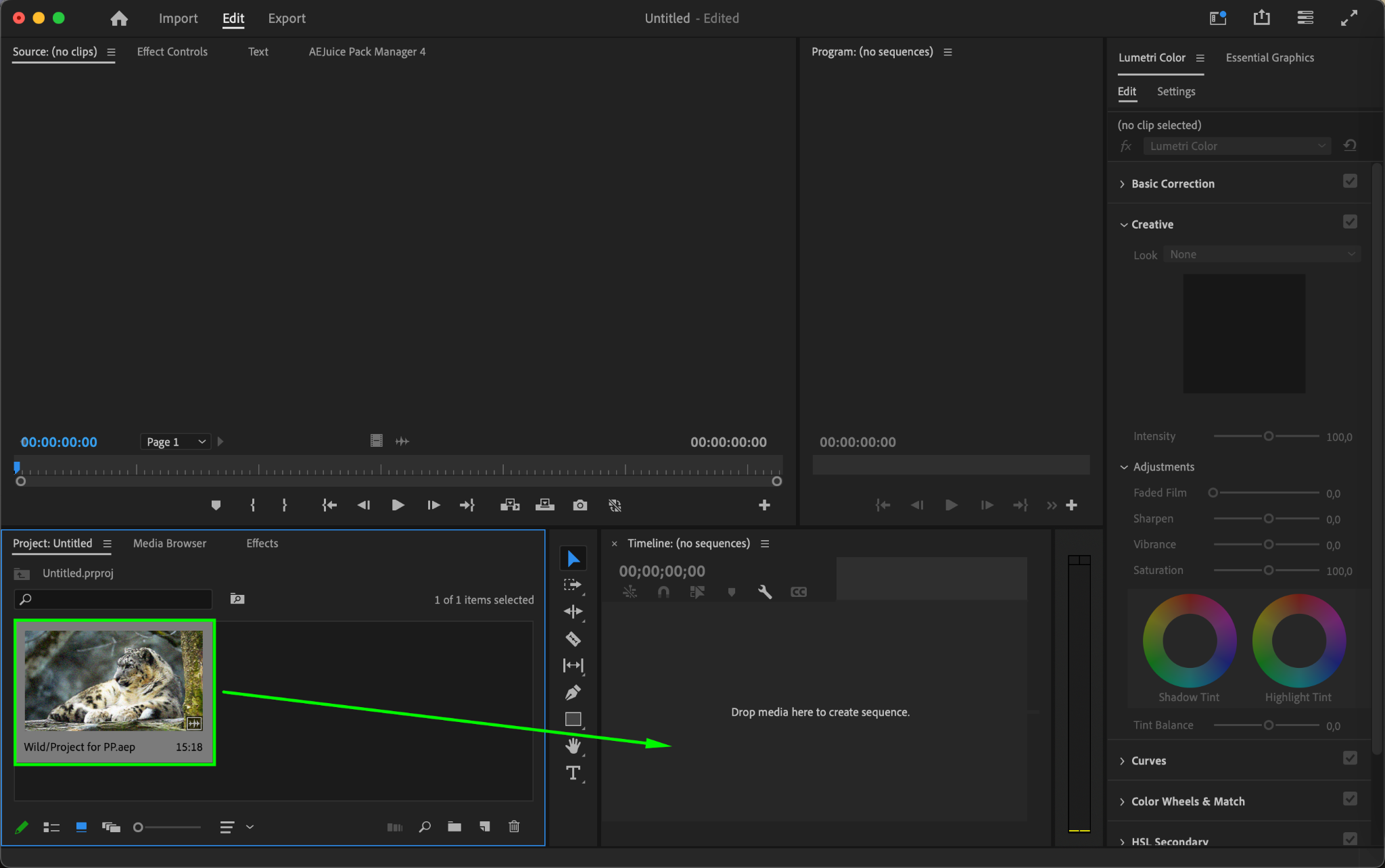 In the Project panel of Premiere Pro, click on “Import Media” to open the import window. Navigate to the location where your After Effects project file (.aep) is saved. Select the file and click “Import.” This will allow Premiere Pro to access the compositions within your After Effects project.