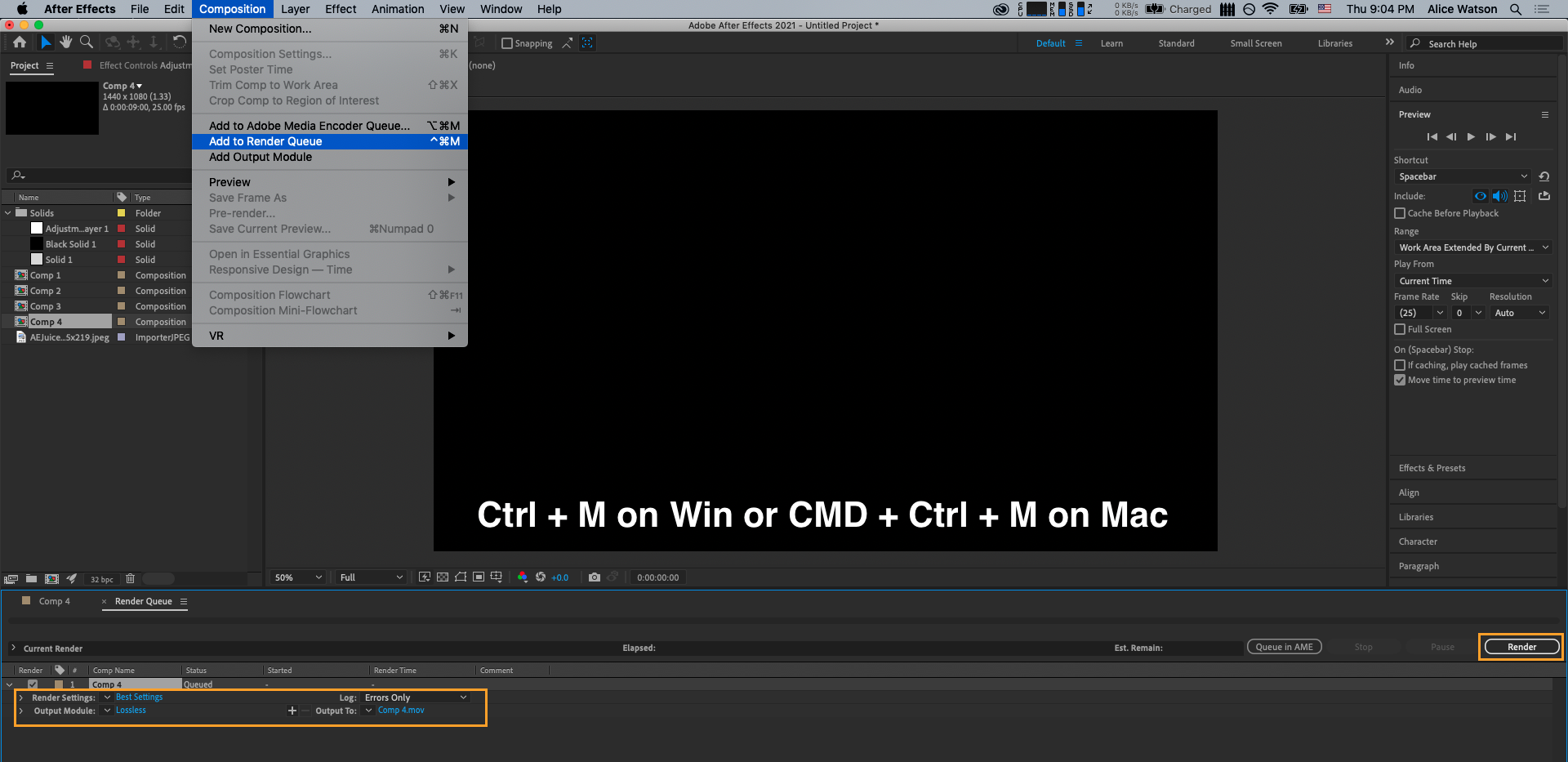 Here is how to create a new composition and import files in Adobe After Effects: