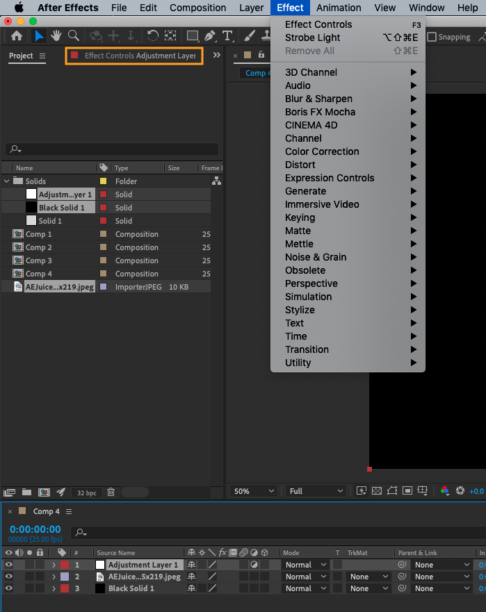 To build a composition with layers in Adobe After Effects: