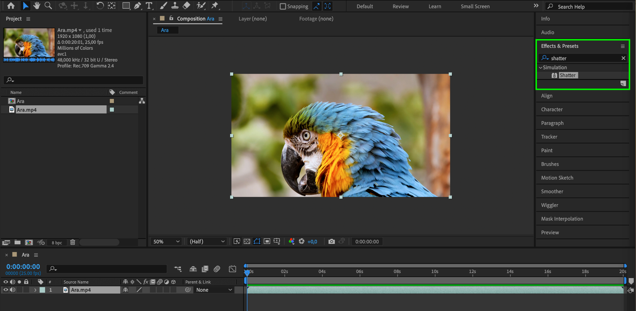 2. In the Effects & Presets panel, search for and find the Shatter effect.