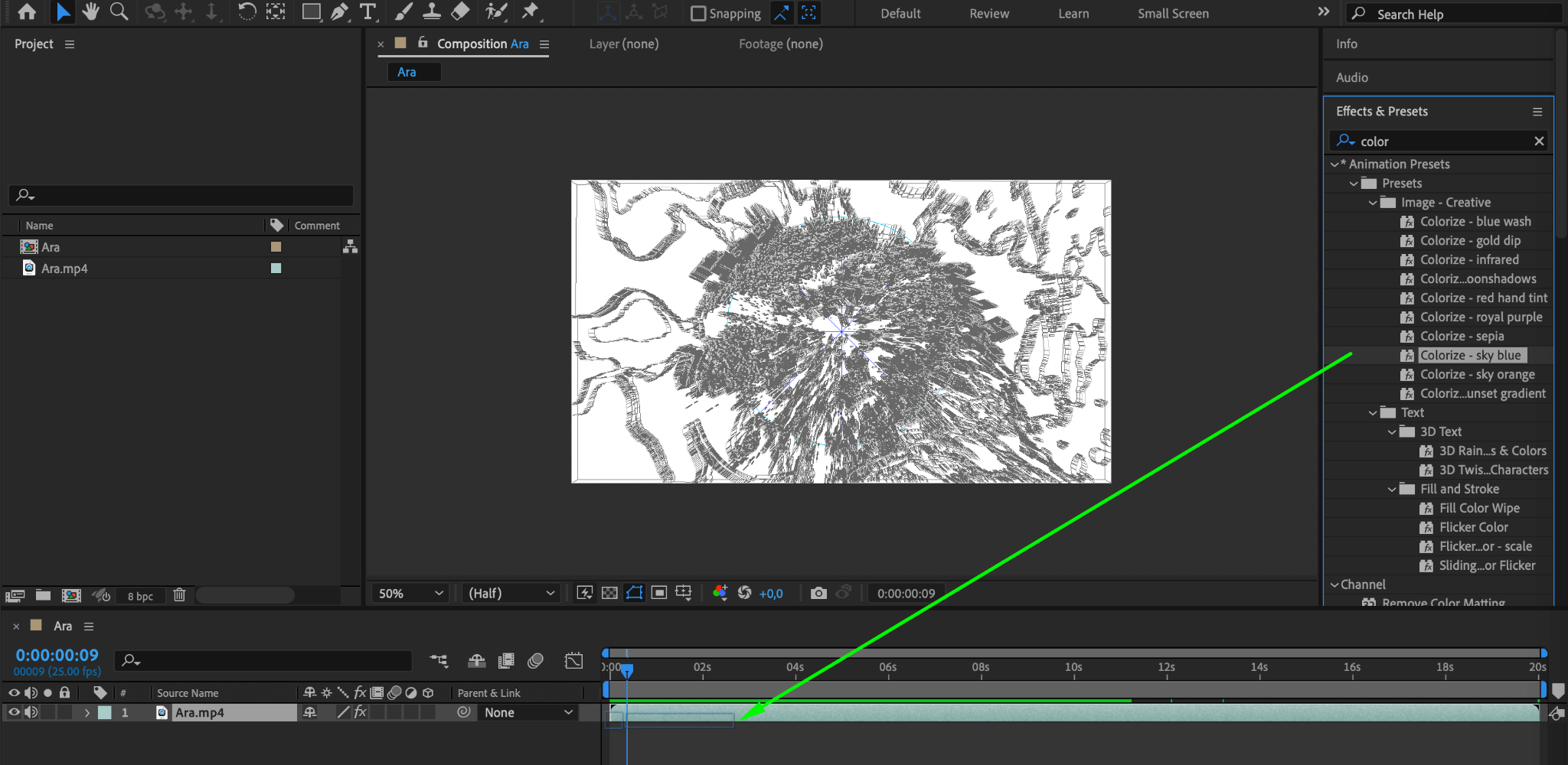 8. Once you are satisfied with the result, render your composition to export it as a video file.