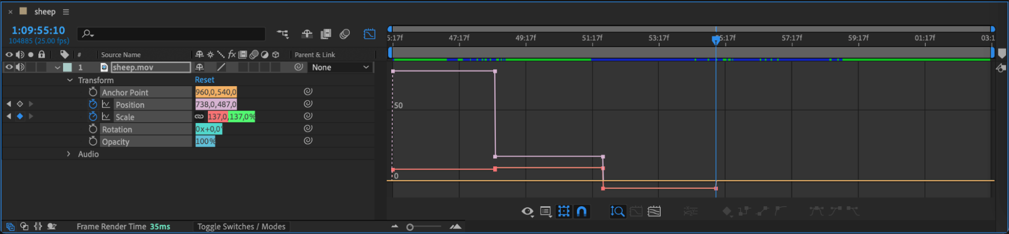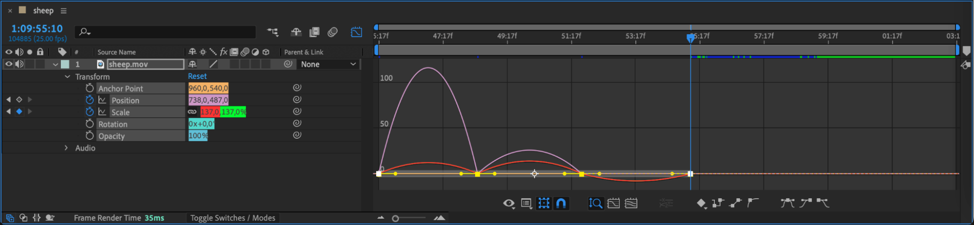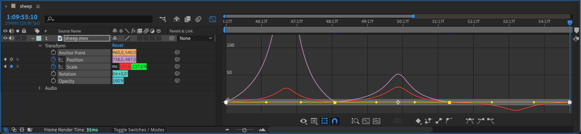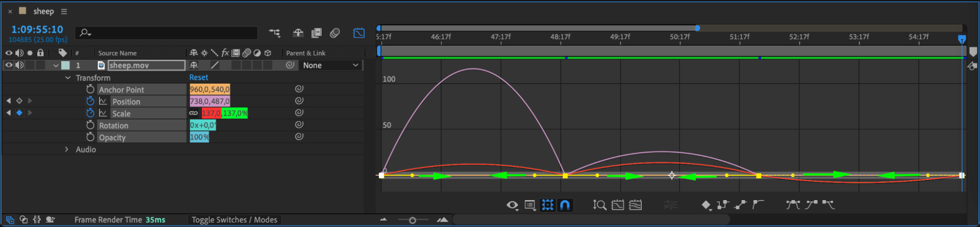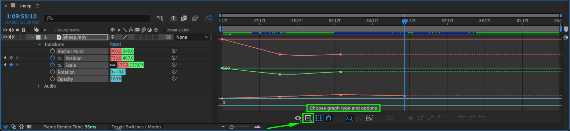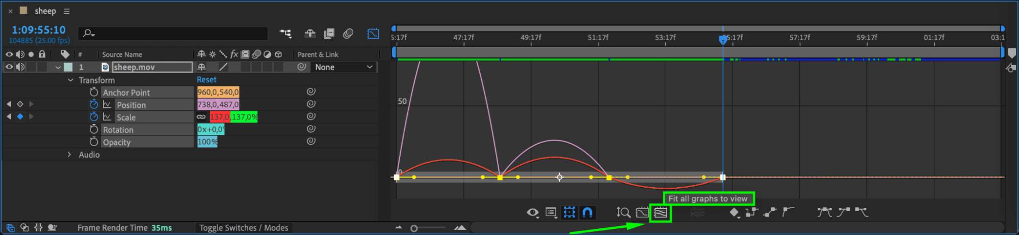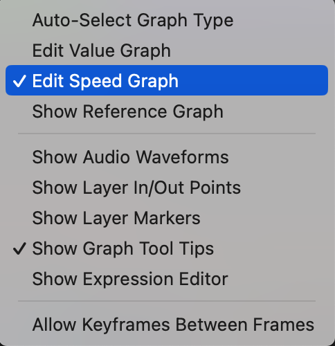 If your graph doesn’t look right, click the Choose Graph Type and Options button at the bottom of the Graph Editor and switch between Value and Speed Graph modes to find the best fit for your adjustments.