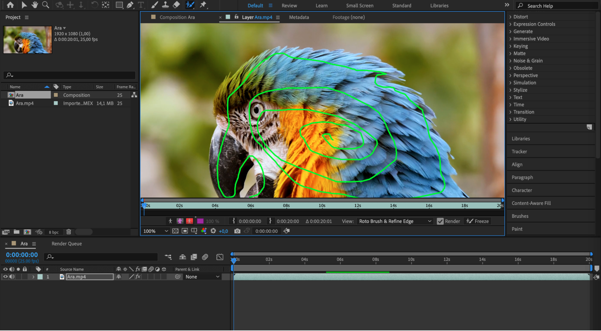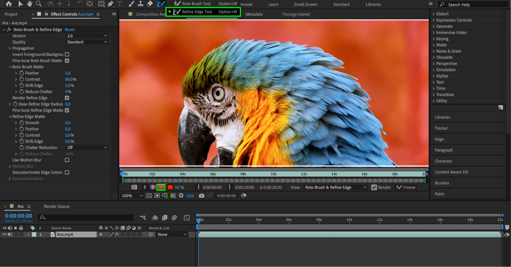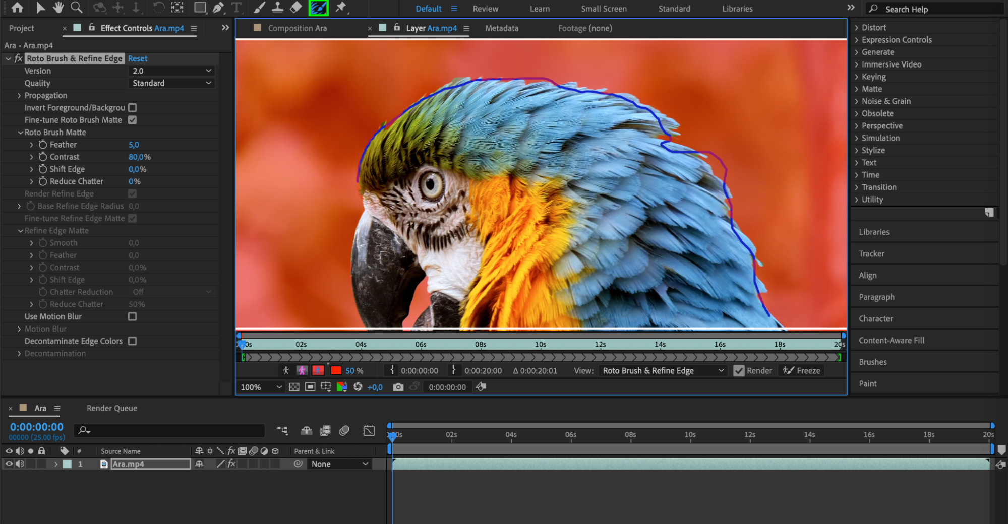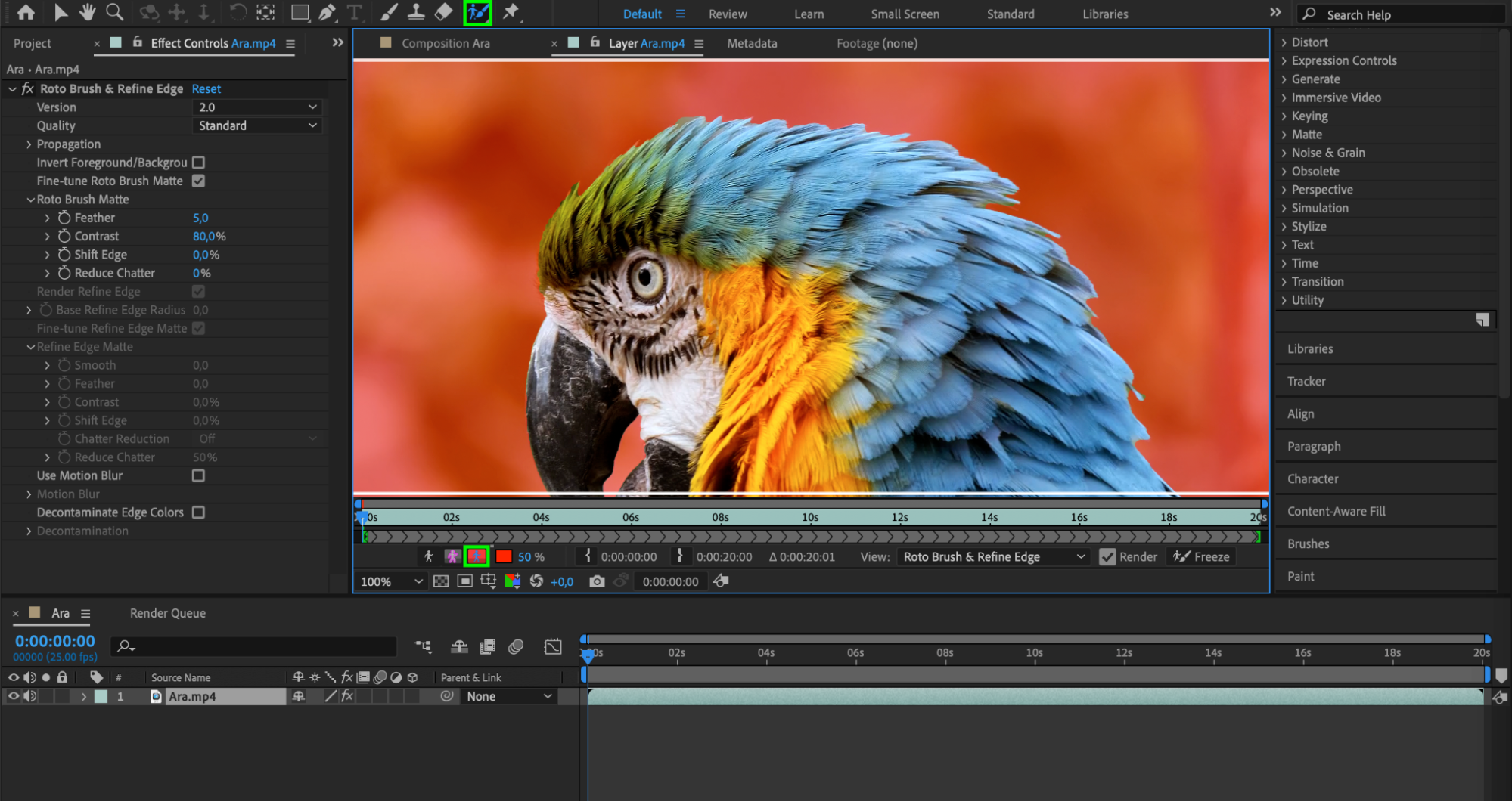 The Roto Brush is a game-changer. It simplifies the process of creating precise masks by automatically detecting edges in your video clips. With this tool, video editors and motion graphics artists can effortlessly separate foreground subjects from backgrounds with unmatched precision and speed. It’s a must-have in your toolkit.