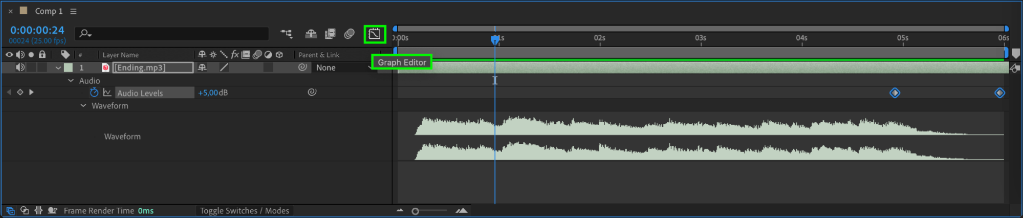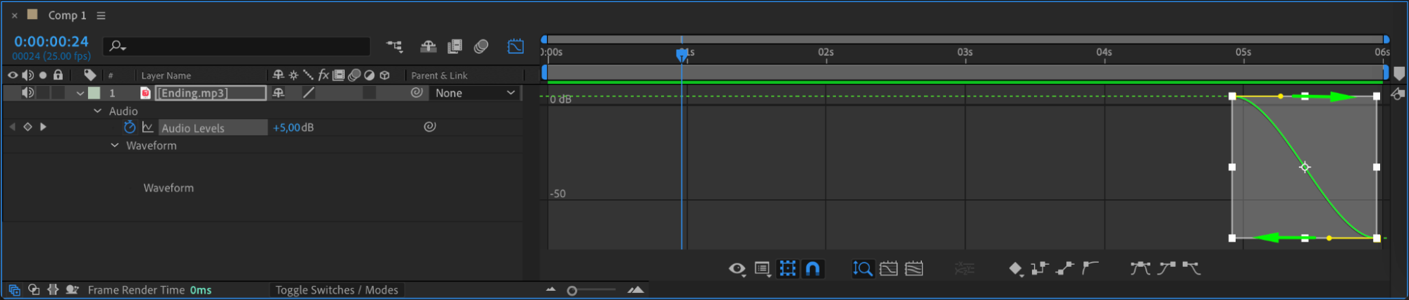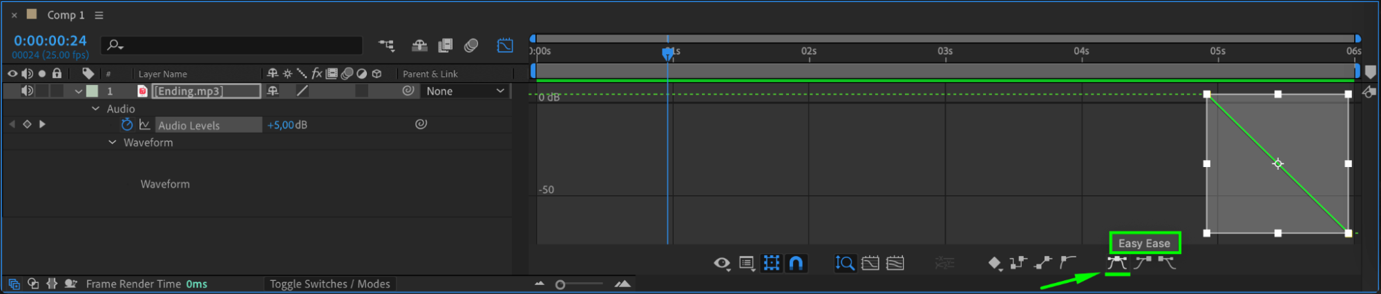 Enhance your audio transitions by using the Graph Editor to apply “Ease Easy” effects. Edit keyframes using curves to refine audio changes smoothly.