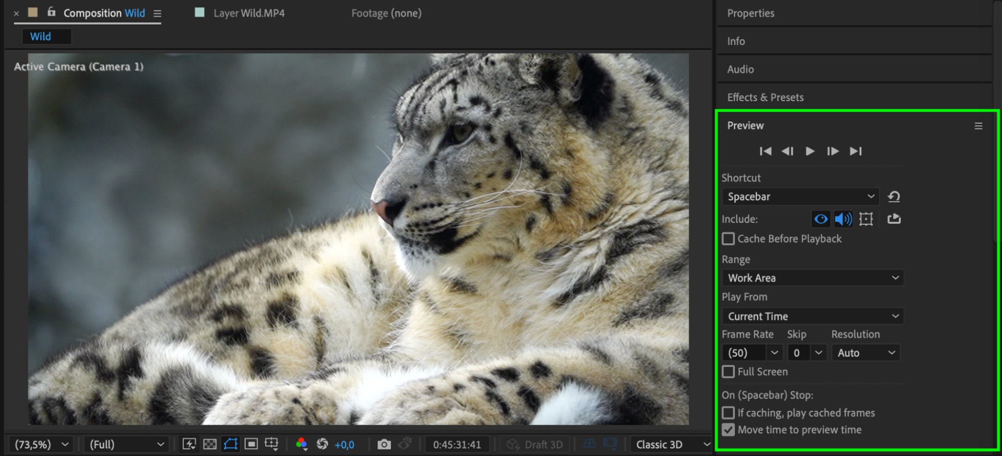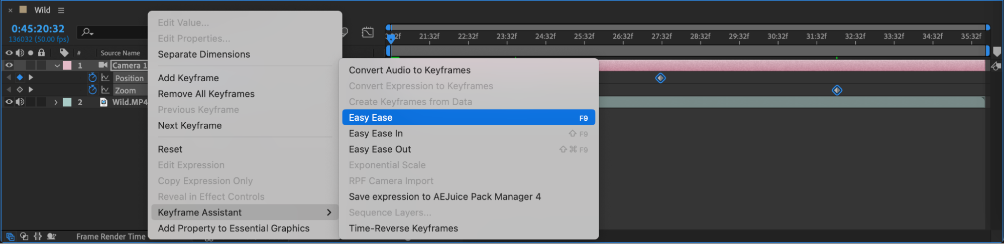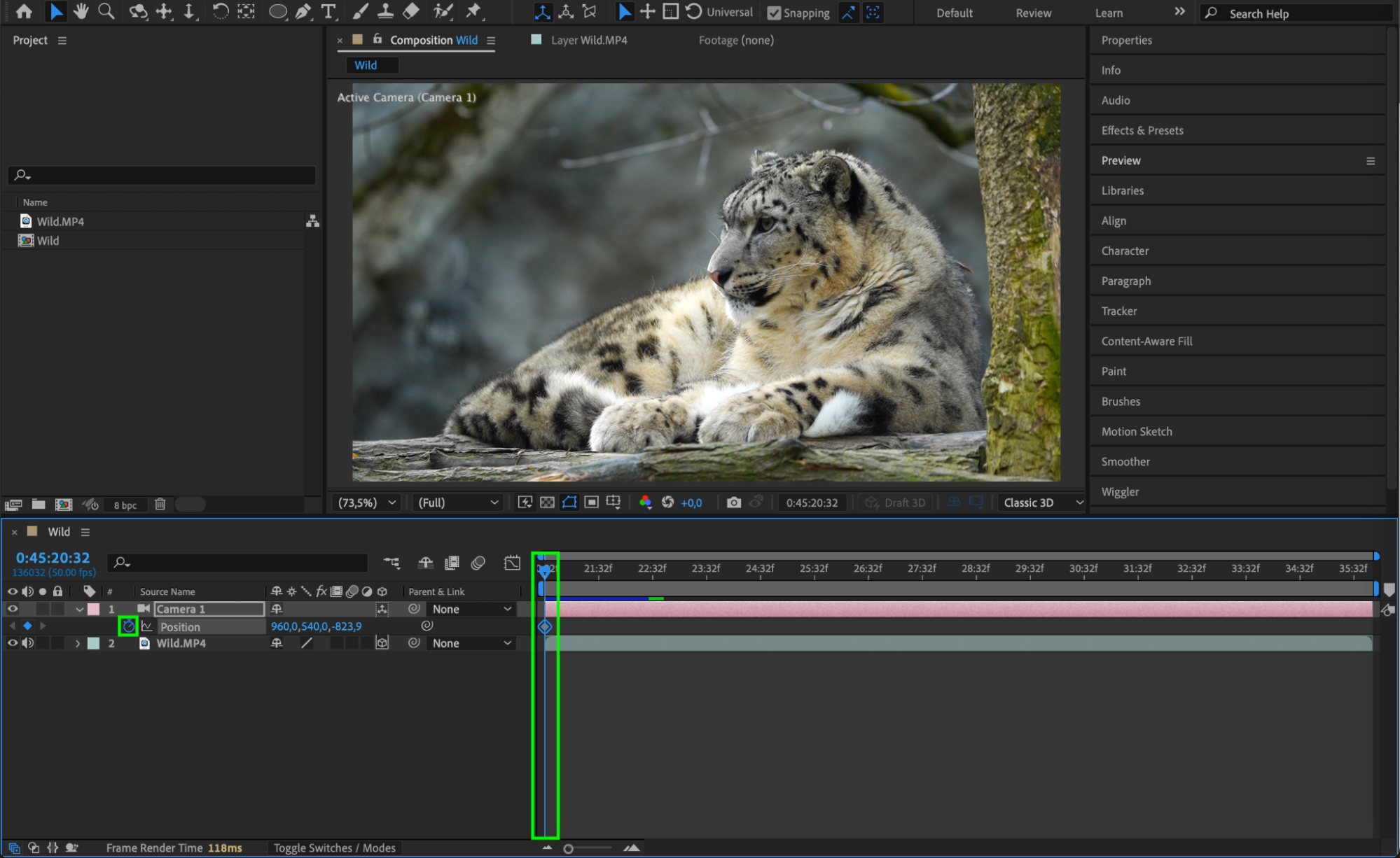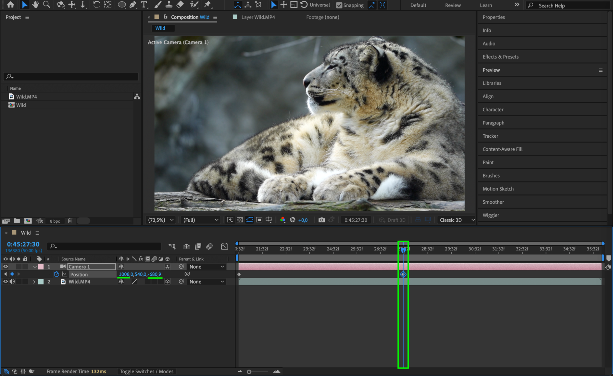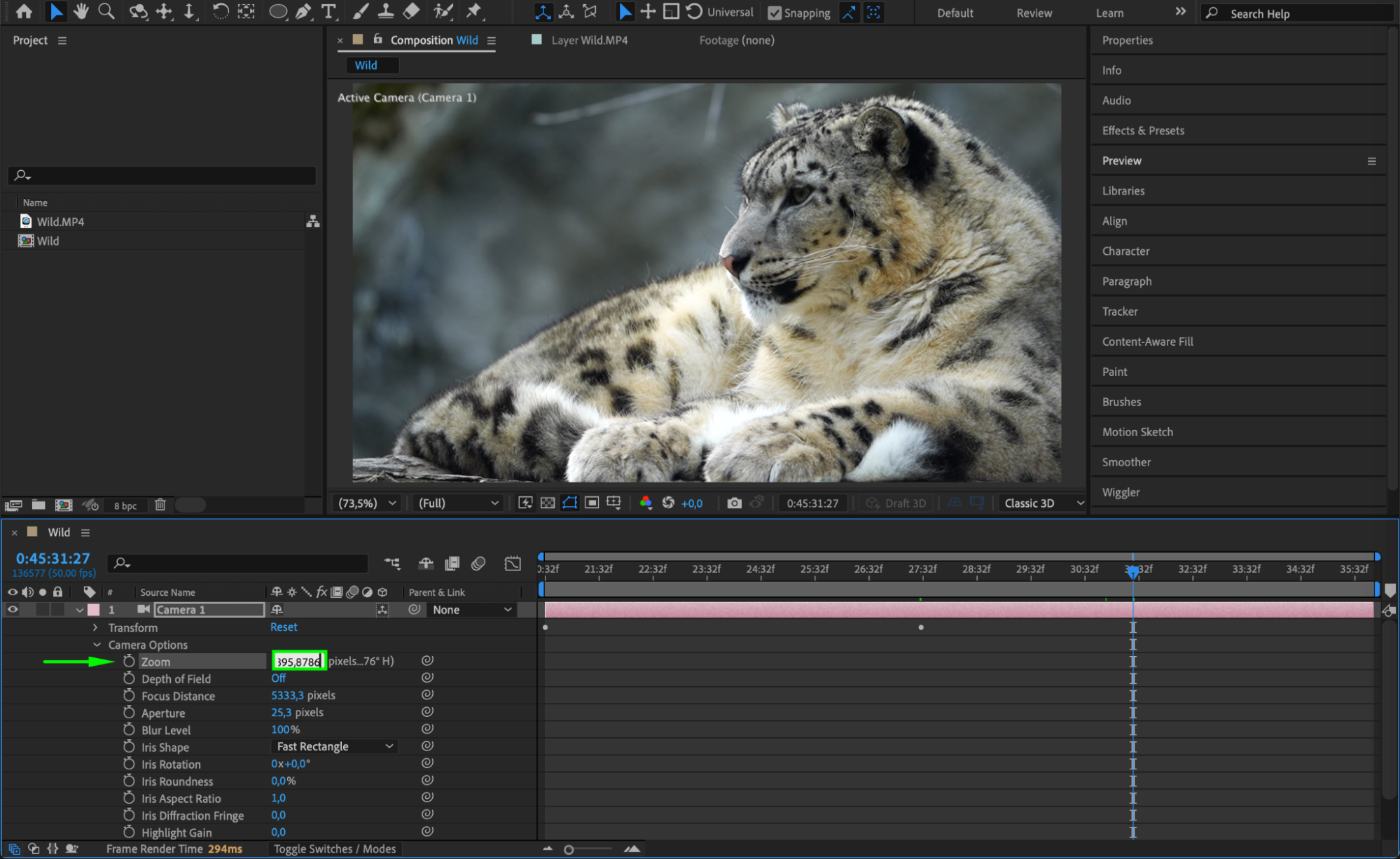 Tip: Zooming in by changing the Z-position of the camera is one of the easiest ways to create a zoom effect. You can also use the Zoom property found in the Camera layer’s settings for more advanced control.