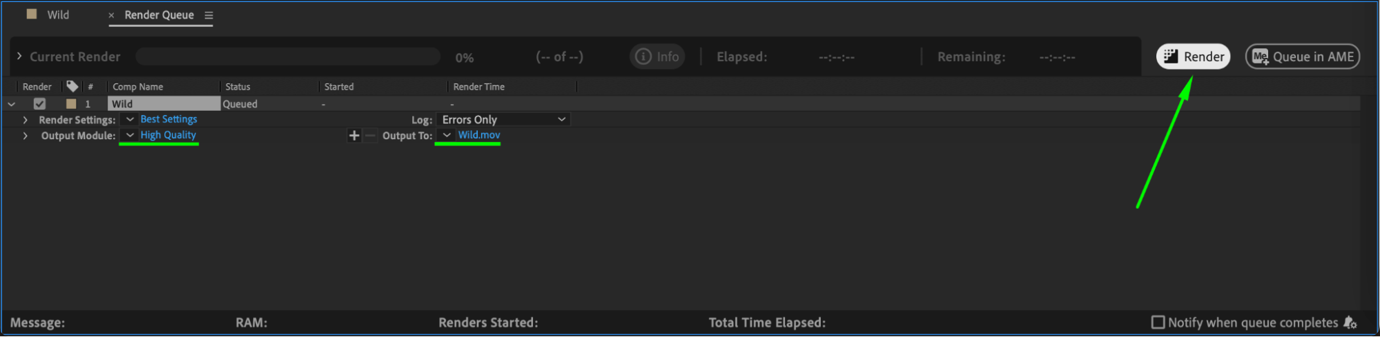 Once you’re satisfied with the result, go to Composition > Add to Render Queue to export your animation. Choose the desired output settings and click Render to save your project.