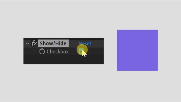 targetProperty = comp(“showOrHideWithCheckbox”).layer(“Controls”)(“ADBE Effect Parade”)(“Show/Hide”)(“ADBE Checkbox Control-0001”); // Pickwhip to your Checkbox Control